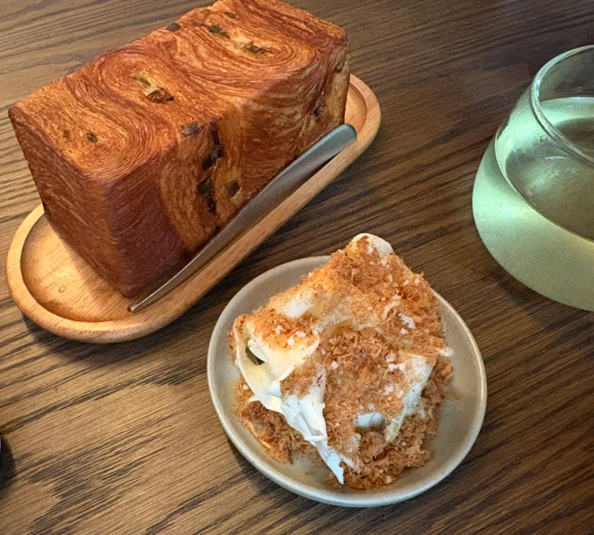 A clever play on a scallion pancake, the “croissant” actually arrives at the table in the shape of a small loaf of bread. The layers form elegant swirls that twist and turn all the way across the loaf as if it had been designed with a stencil. When torn into, the interior was flaky and flecked with scallions. It’s served with a bright yellow-white side of whipped Irish butter that’s been dusted with the salty crunch of pork floss.