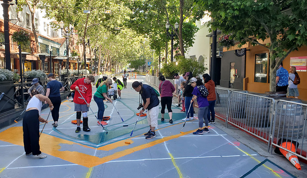 Viva CalleSJ is managed by the city’s Department of Parks, Recreation, and Neighborhood Services, with support provided by Silicon Valley Bicycle Coalition and grants from the Knight Foundation. And volunteers are welcome. To volunteer as an individual, or participate with a group in the Adopt-an-Intersection program, email vi*********@*******ca.gov.